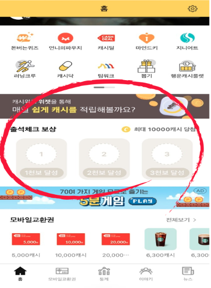 따라서 최초 설치 후 어플에 들어가시게 되면 보너스 캐시까지 챙겨보실 수 있습니다.