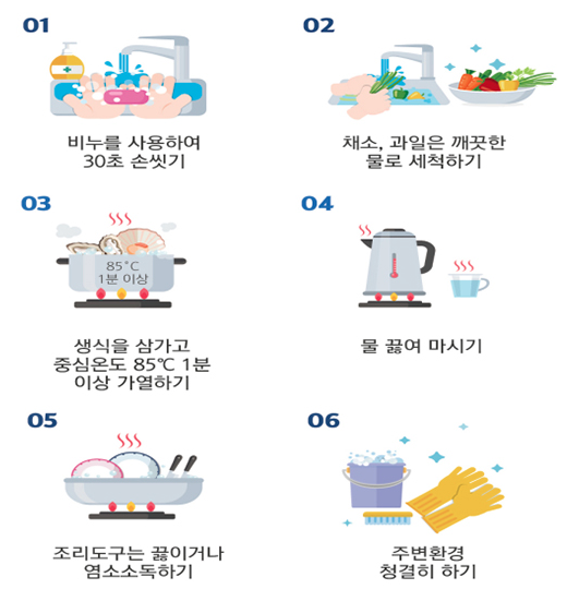 - 음식 푹 익히기 : 음식을 만들때 충분한 조리시간을 지켜야 합니다. 특히 해산물 같은 경우는 평소보다 1분가량 더 익혀주면 좋습니다.