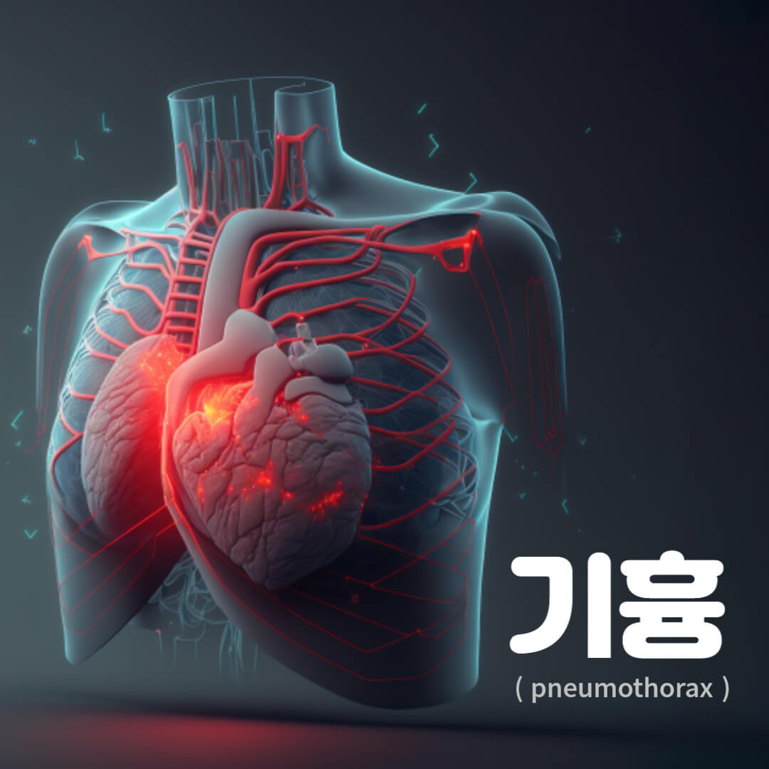 -기흉은 발생 원인과 심각도에 따라 다양한 증상을 나타내며, 기본적으로 나타나는 증상 흉통은 가장 흔한 증상 중 하나입니다. 이 통증은 마치 날카로운 물체로 찔린 듯한 강렬한 고통으로 시작하며, 점차 통증이 심해지는 특징이 있습니다. 보통 한 쪽 흉부에 집중되며, 흉골 아래나 옆구리로 퍼질 수 있습니다. 숨을 크게 들이마실 때나 기침을 할 때 특히 한 쪽 겨드랑이 부근이 당겨지는 통증이나 헛기침이 자주 발생하며, 목소리에 공기 빠진 소리가 들릴 수 있습니다. 또한 미약한 활동에도 숨이 차고, 더 심한 경우 누워서 호흡하기만 해도 통증을 느끼게 됩니다. 호흡이 점차 어려워지고 산소 공급량이 감소하면, 환자는 피로와 쇠약감을 느끼게 됩니다. 호흡 곤란이 더해져 가까운 거리라도 이동하는 것에 어려움을 겪을수 있습니다. 이런 호흡 곤란은 흉부 내부 압력 변화와 폐의 팽창 제한 때문에 발생합니다. 만약 산소 공급이 충분하지 않으면 뇌에 영향을 주어 어지러움과 혼란이 올 수 있으며, 심한 경우 기절할 수 있습니다.특히 이미 폐 질환을 가진 사람이나 천식 등을 앓고 있는 경우, 기흉의 위험이 높아집니다. 기흉이라는 질병은 재발 가능성이 높아 조기 발견과 예방이 중요합니다. 기흉은 심각한 중증도 일 경우 사망으로 이어질 수 있으므로 초기에 증상을 감지하고 적절한 치료를 받는 것이 중요합니다. 치료 후 에도 정기적인 검진을 통해 재발을 방지하고 폐 건강을 유지하여야 합니다.
