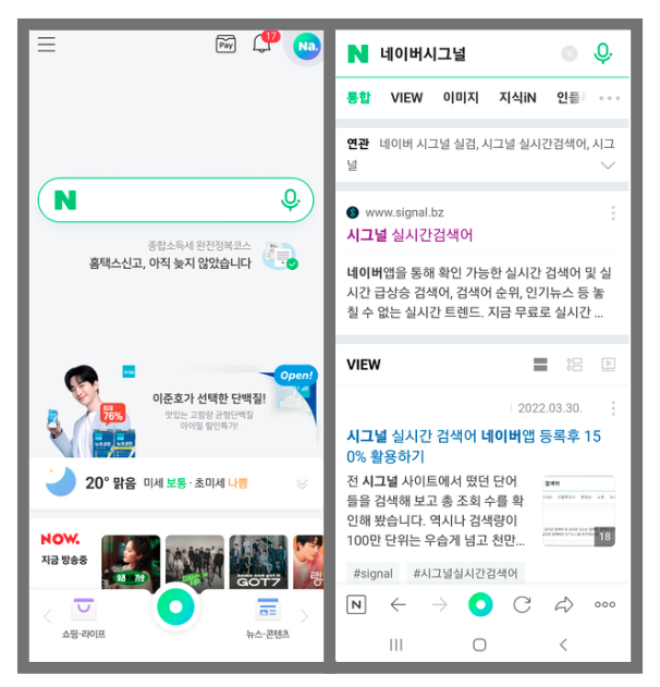 ⑦. 뉴스 콘텐츠 → 시그널 → 실시간 검색어 순위 확인