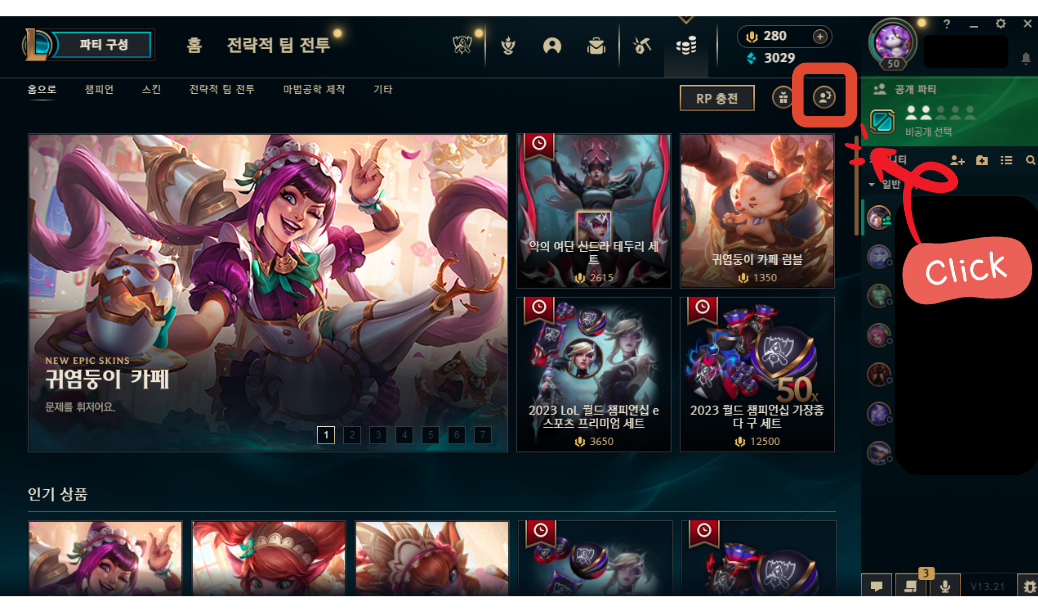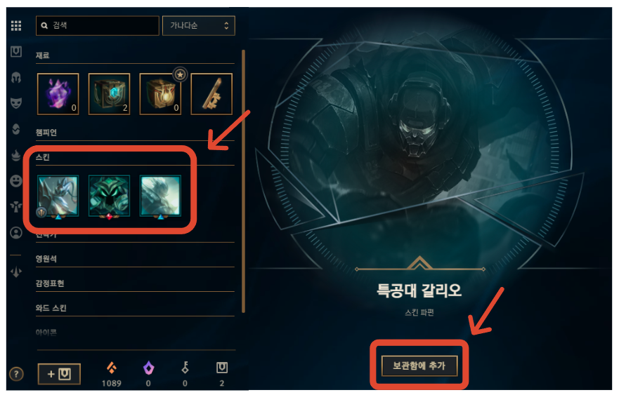 우선 스킨을 입히기 위해선 챔피언이 있어야겠죠?