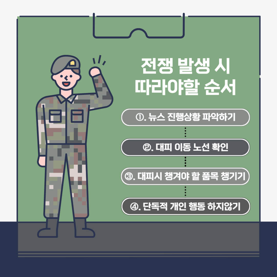 전쟁 발생 시 따라야 할 순서 4가지로 정리해 봤습니다.