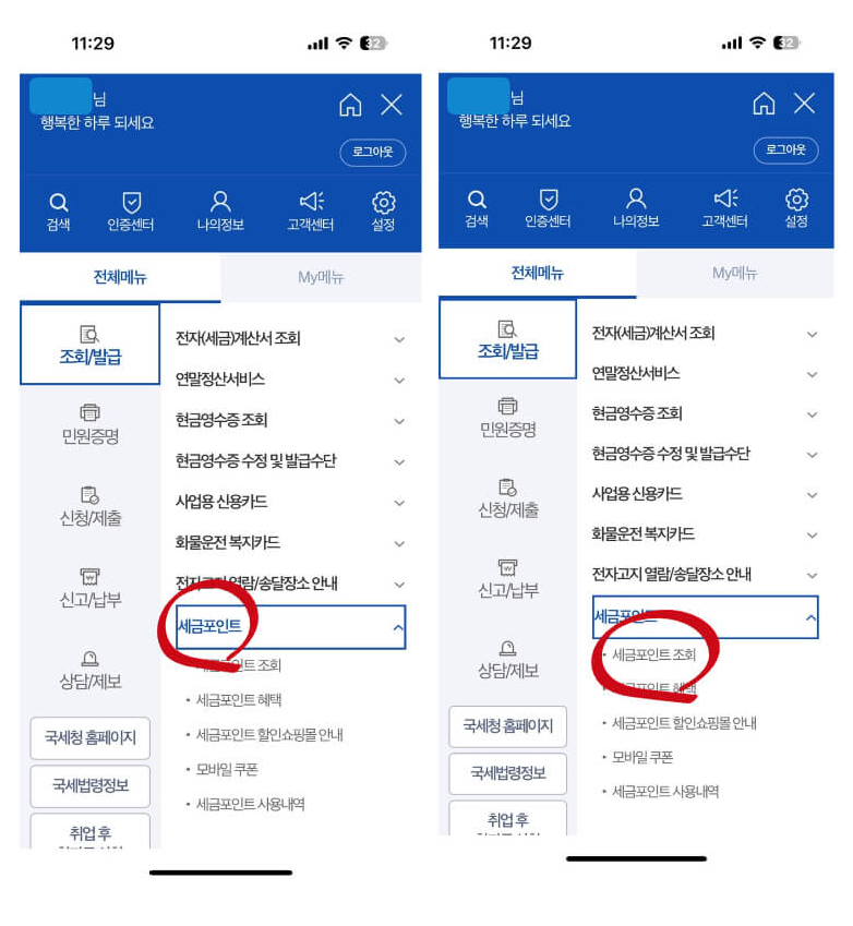 ②. 바로 아래 세금포인트 조회를 클릭합니다.