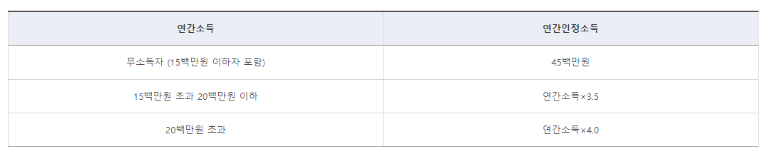▶ 배우자 합산 1년 급여 5천만 원, 2자녀 이상 다자녀 6천만 원, 신혼부부(결혼 7년 이내) 7,500만 원 이하