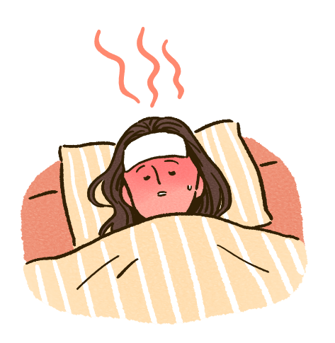①. 37 ºC 이상의 고열과 함께 차가운 식은땀이 발생합니다.